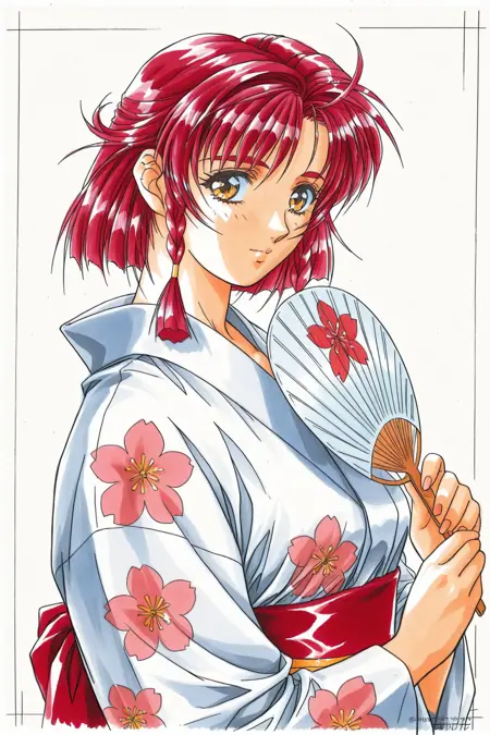 プロンプトに Old Version または 1990s \(style\) を使用すると、横田守の初期の描画スタイルが得られます。