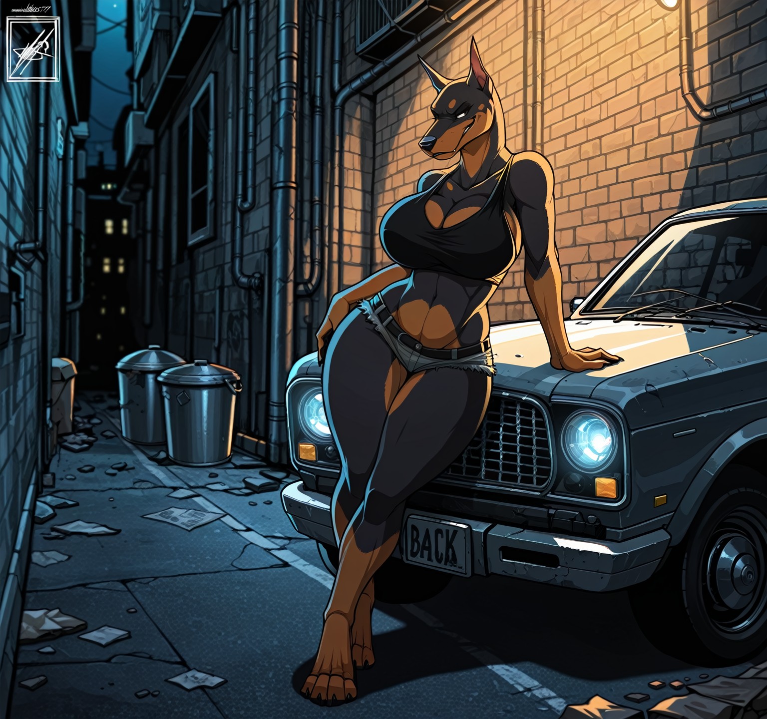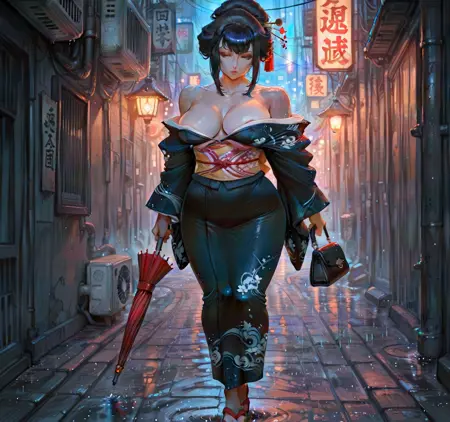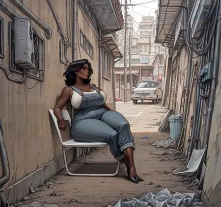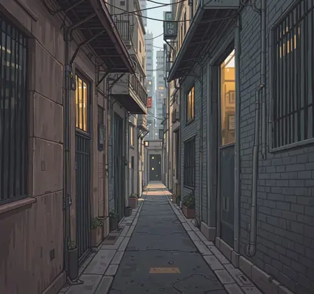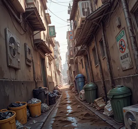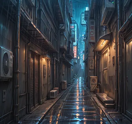 至于触发词,单词 alley 通常会生成较宽的后巷,而 narrow alley 则会生成更窄的。可在此基础上添加其他描述词,如 杂乱、城市、建筑、街道、自行车、户外、垃圾桶、汽车、空调、夜晚、白天、树木、植物、工业管道、电线、电缆、灯光、街灯、标志、涂鸦、海报 等等...