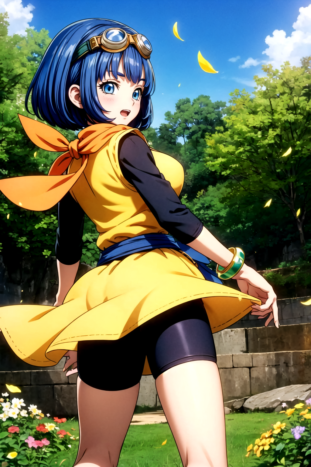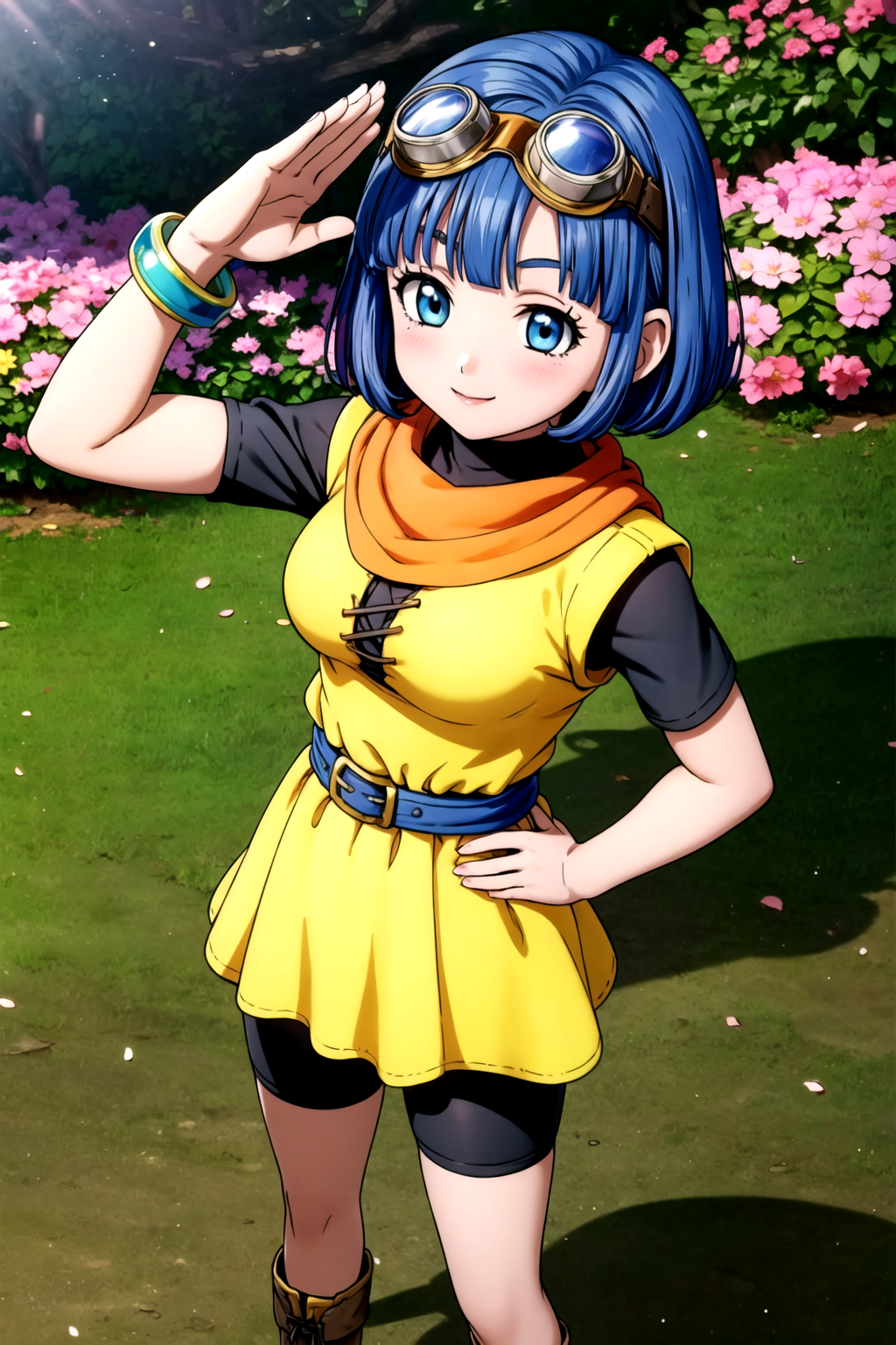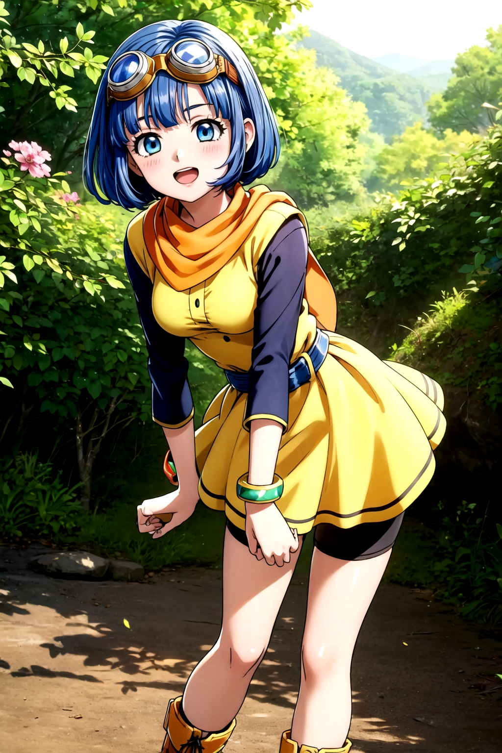 ・DQ10 seraphi(short hair, bob cut, blue hair, blue eyes, goggles, goggles on head, )