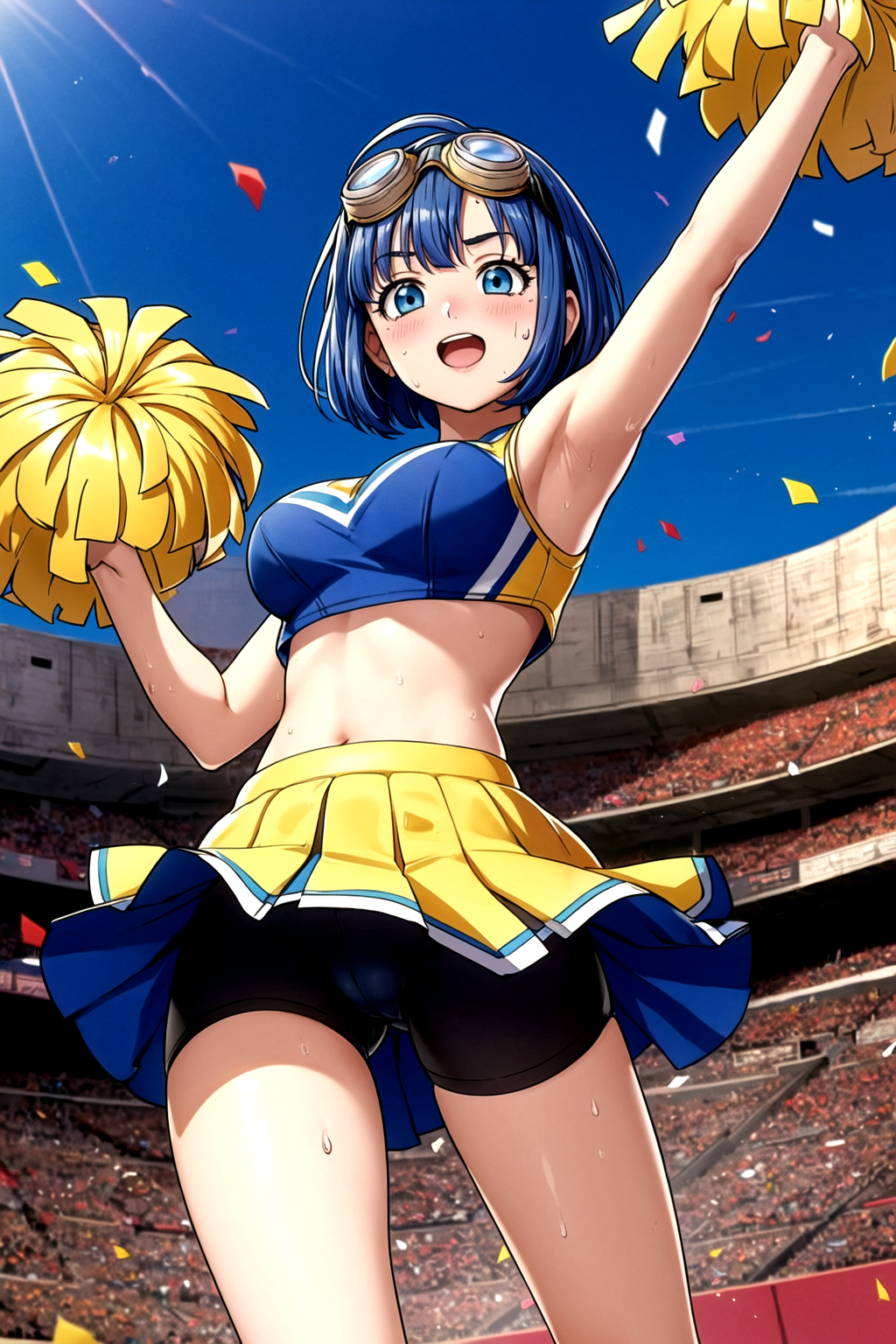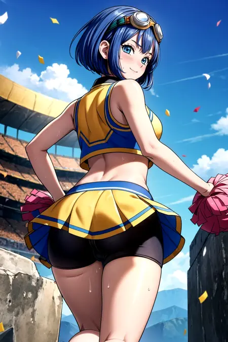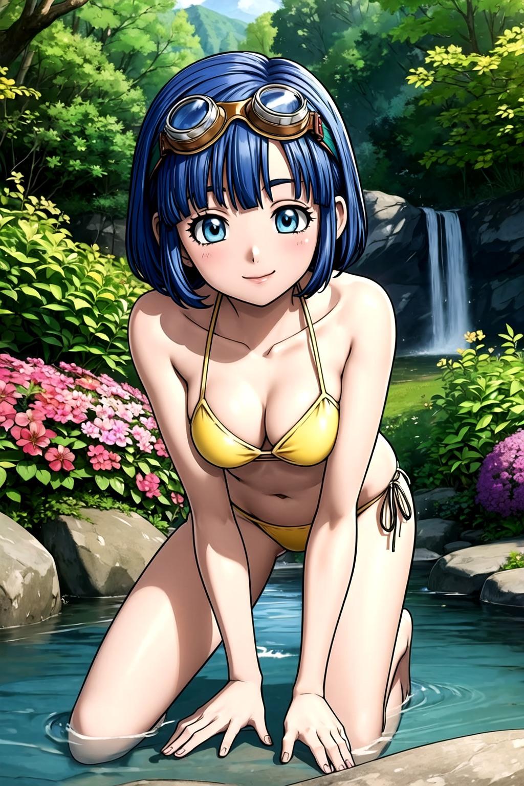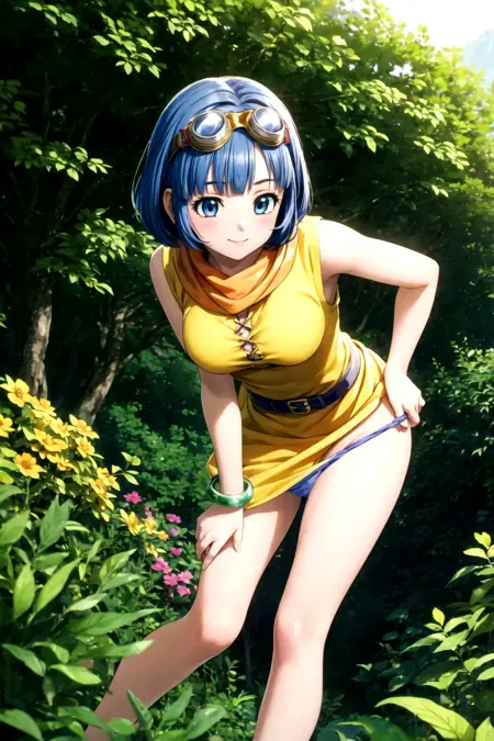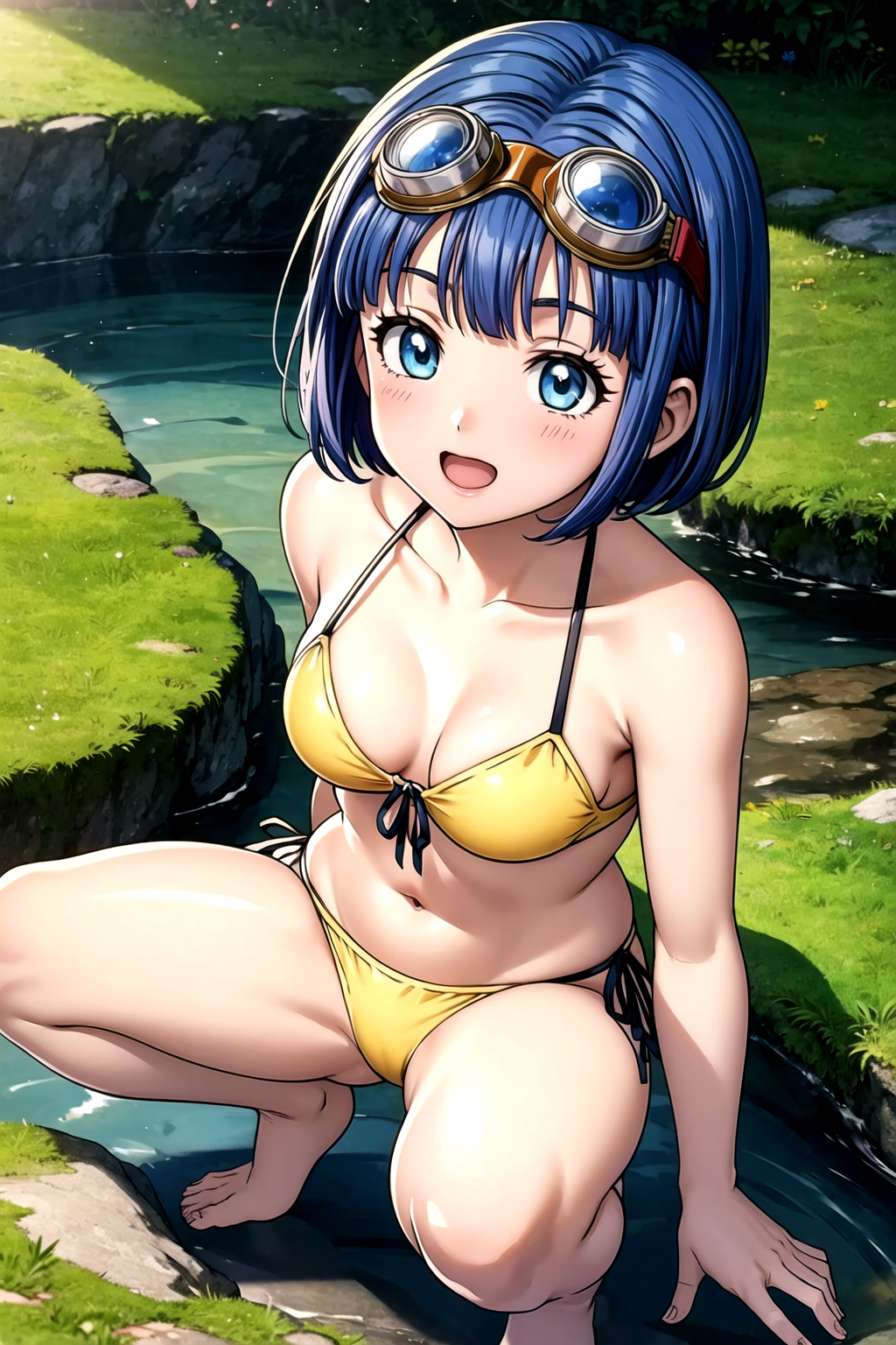 ・DQ10 seraphi(short hair, bob cut, blue hair, blue eyes, goggles, goggles on head, )
