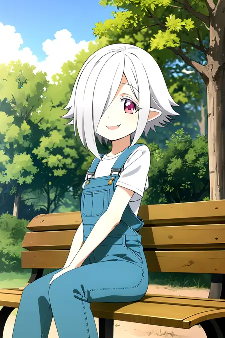 シルバーの髪、シャツ、スカート、リボン、尖った耳