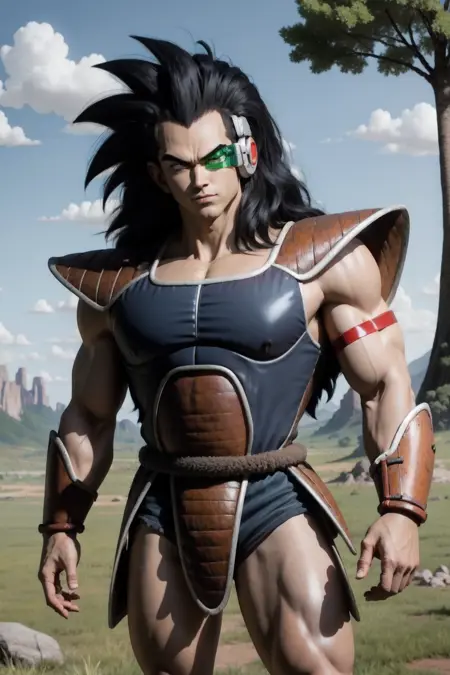 raditz, 1boy, black hair, black eyes, very long hair, monkey tail