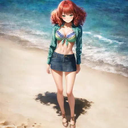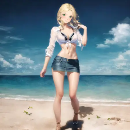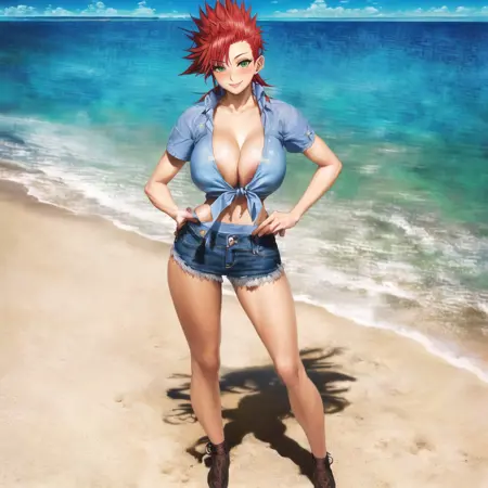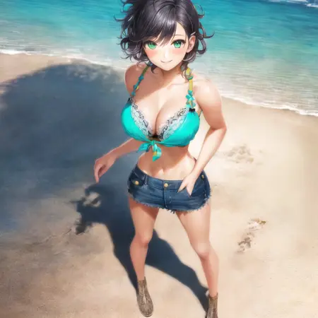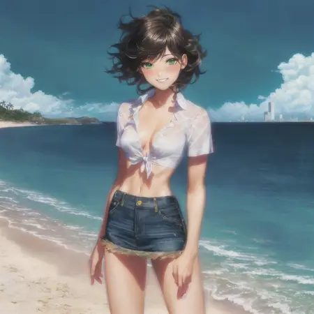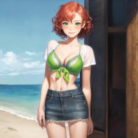 Notes: DON'T USE "FRONT-TIE TOP"!!! Also, use "shirt pull" for breasts poking out, should work with and without the bra) and "nipples" helps with nudity! "shirt pull, bra:0.5" helps with breasts poking out WITH the bra.