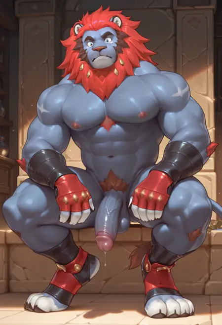 メインプロンプト:オシリス、ライオンの少年、青い目、青い肌