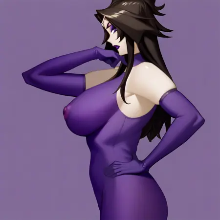 | トレーニングワード | Ziling, purple eyes, brown hair, purple eyeshadow, purple lipstick,コピーしました! mouth veil, purple dress, white shawl with hood, garter straps, thighhighs, purple high heels,コピーしました! purple bodysuit, bare shoulders, elbow gloves,コピーしました! areola slip, nipple slip, コピーしました! |