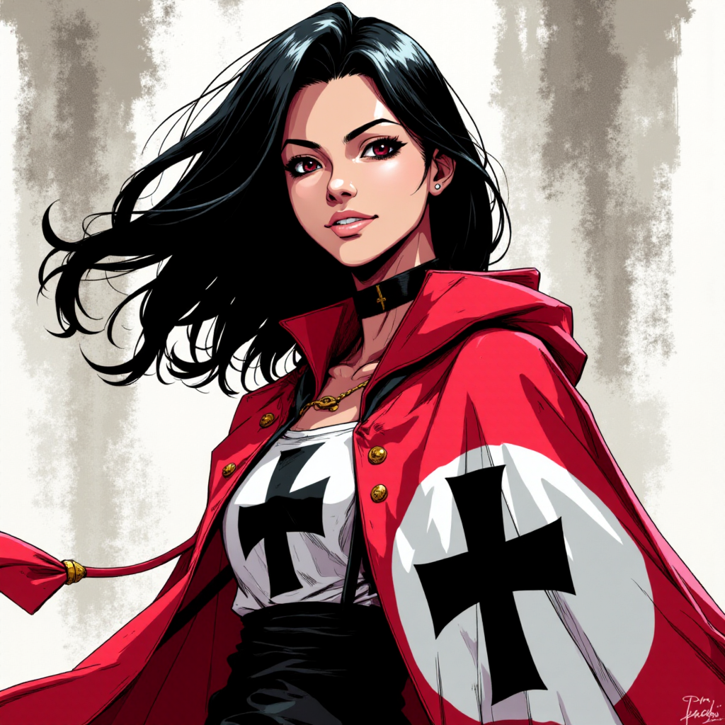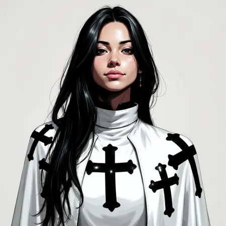 一幅风格化的圣殿骑士肖像,具有鲜明的轮廓和柔和的阴影,非常适合生成身穿仪式长袍或奇幻服饰的富有表现力的角色。