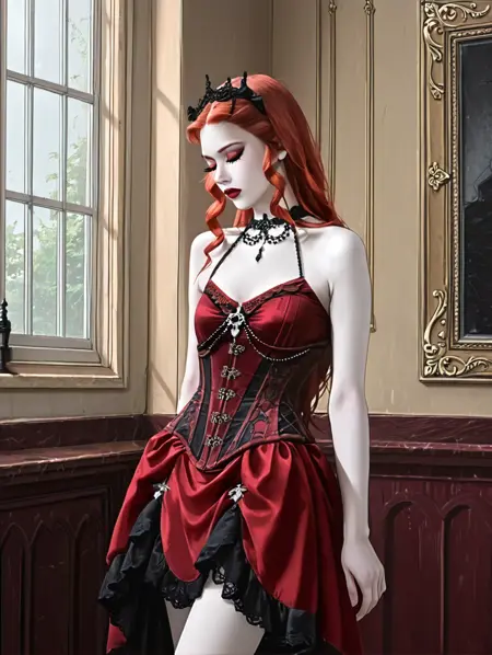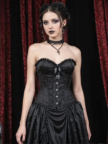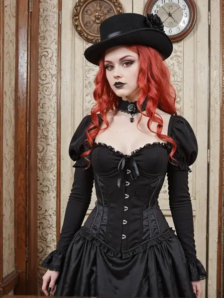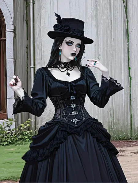 1890年代のゴシック・ロマンスの時代へようこそ。このLoRAは、ビクトリア朝のファッションの永続的な優雅さと、ゴシック芸術の憂鬱で劇的な雰囲気を融合させています。繊細なレース、コルセット、高い襟、ゆったりと流れるドレス、そして憂愁を帯びた魅力をお楽しみください。