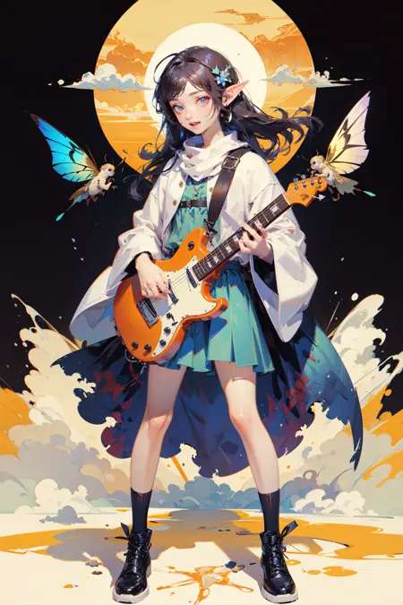 このモデルは2.5Dキャラクターを生成するスタイリッシュなモデルで、結果に「輝くソフトなブレンド効果」と、やや滑らかな「油絵」技法のヒントを与えます。色調はややクールでダークな方向に傾いています。このモデルは、シンプルまたは無地の背景を持つ美しいキャラクターを生成するのに非常に優れています。背景自体もそれなりに生成できますが、キャラクターが含まれる場合、背景は不安定になることがあります。