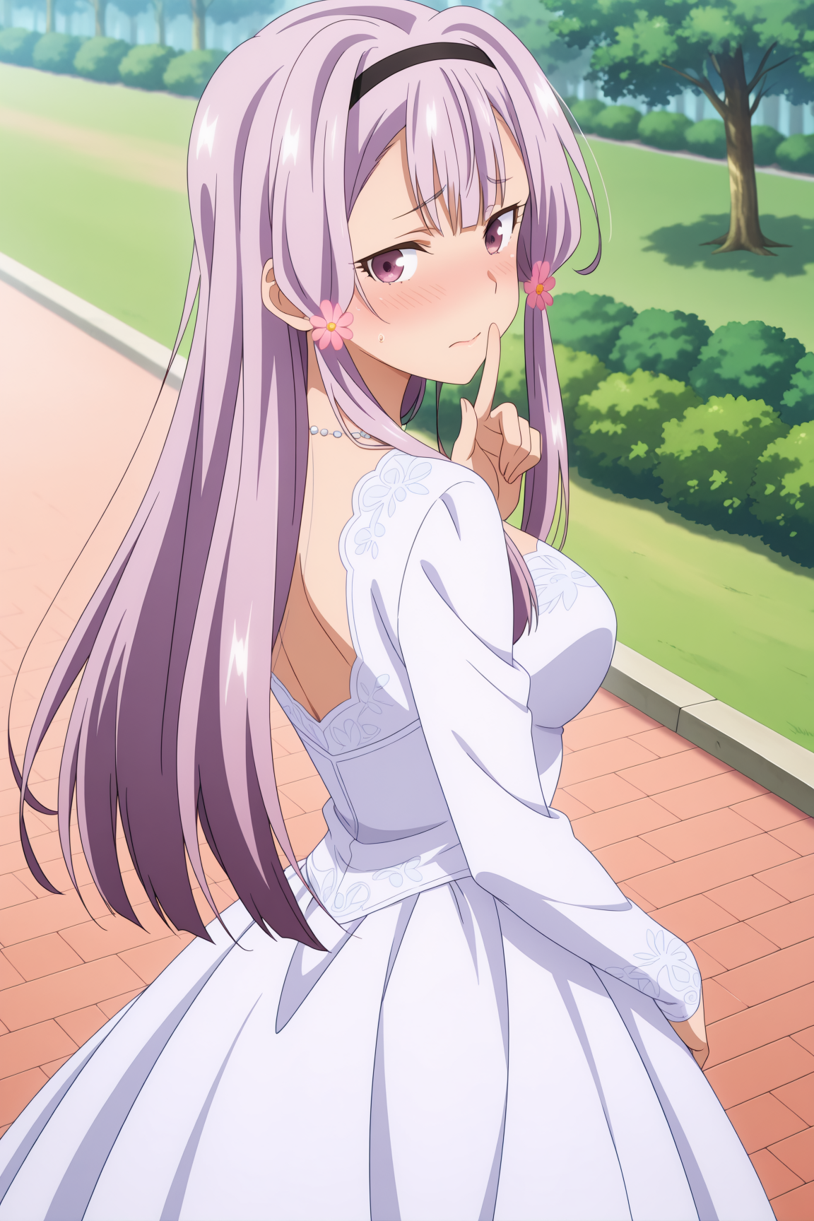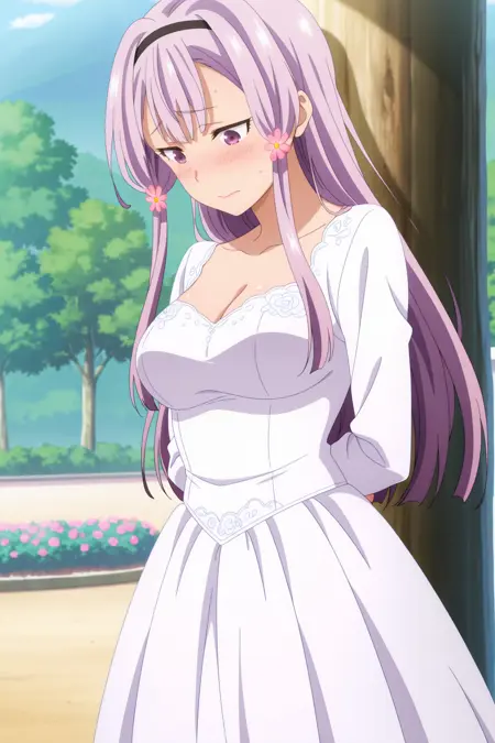 1girl, long hair, hair ornament, purple eyes, purple hair, hairband, hair flower, akino_sakura