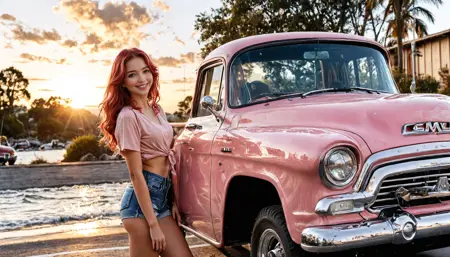 **1957 GMC 100 NAPCO 4×4** LoRA 经过优化,可生成经典的 1957 年 GMC 皮卡的写实高保真渲染效果。该 LoRA 精准还原了这款经典美式工作车的复古曲线、抬升姿态与镀铬细节,同时在颜色、环境与光照方面提供最大灵活性。