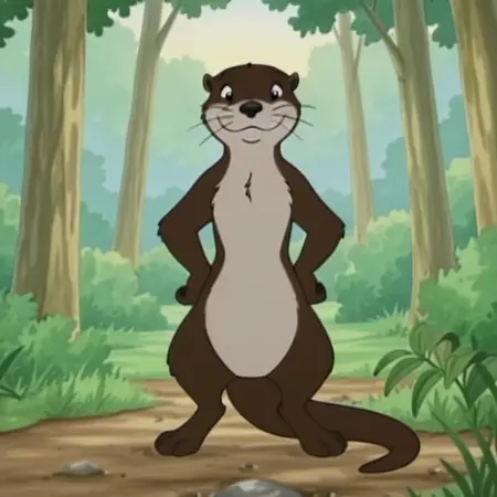 otterfrnklnilv2, semi-anthro, female otter, brown fur, black eyes, whiskers,