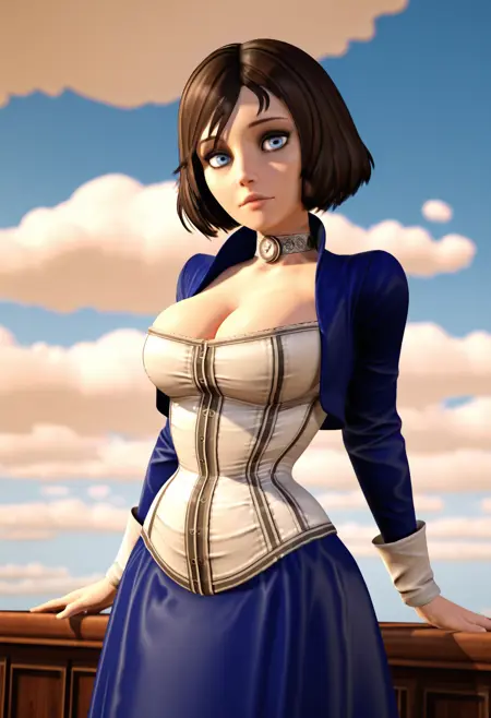V2 activation words: elizabethilv2, blue dress, brown hair, blue eyes, cropped jacket, choker, corset, long skirt,