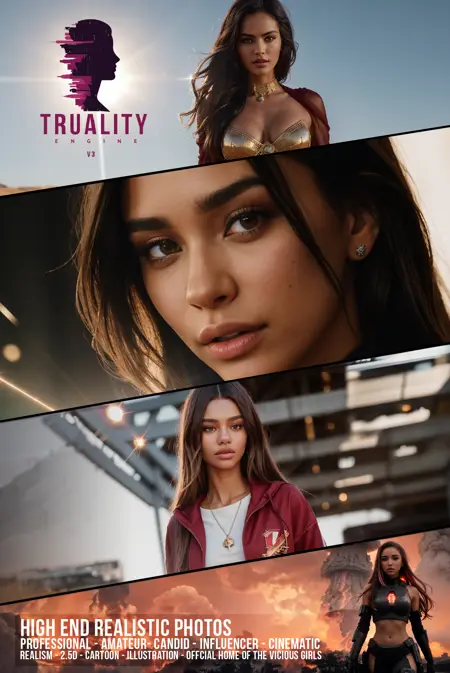 免责声明:所有“Vicious家族”发布的模型均为虚构。我无法了解世界上每一位人物、演员或网红,任何相似之处纯属巧合。虽然我可能受某些我喜欢的外貌启发,但我从未、也绝不会故意使用任何人的原图来刻意制造相似形象。我的所有模型要么完全通过提示生成并基于结果训练,要么混合了两位女性朋友的肢体或面部特征——她们已书面同意其图像用于我的创作流程。若您认为我的某个模型与某位名人、演员或网红相似并感到担忧,请留言,我会直接联系当事人、其团队或代理人处理。