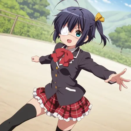 Takanashi rikka (Chuunibyou demo koi ga shitai!),black hair,ahoge,eye patch,blue eye,one side up,medium breast