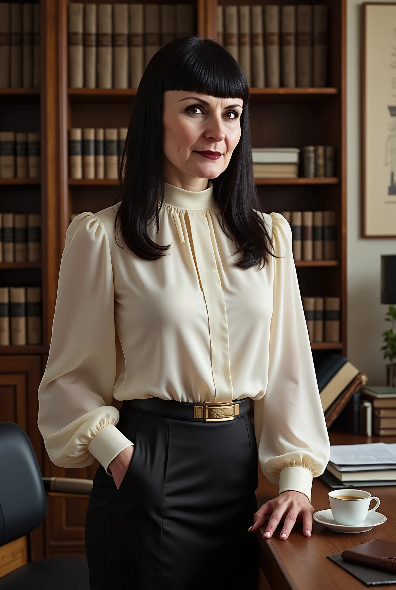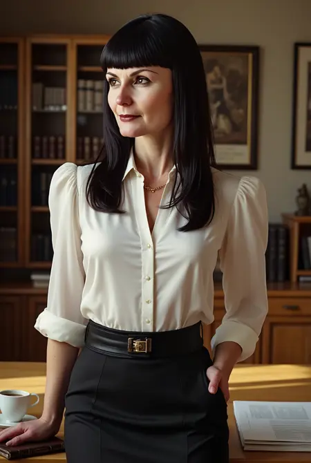 Léa 的外貌优雅无可争议。她拥有一头乌黑柔顺的秀发,如波浪般完美垂落,衬托出雕塑般精致的面容。高耸的颧骨、杏仁形的榛色双眼,以及柔和却沉静的神情,赋予她与生俱来的高贵气度。她对风格有着极致的品位:偏爱剪裁利落的衬衫、极简的珠宝与深色长裤,散发出既具巴黎风范又个人化的永恒优雅。她极白的肌肤与深色特征形成优雅对比,进一步强化了她威严却温婉的视觉气质。
