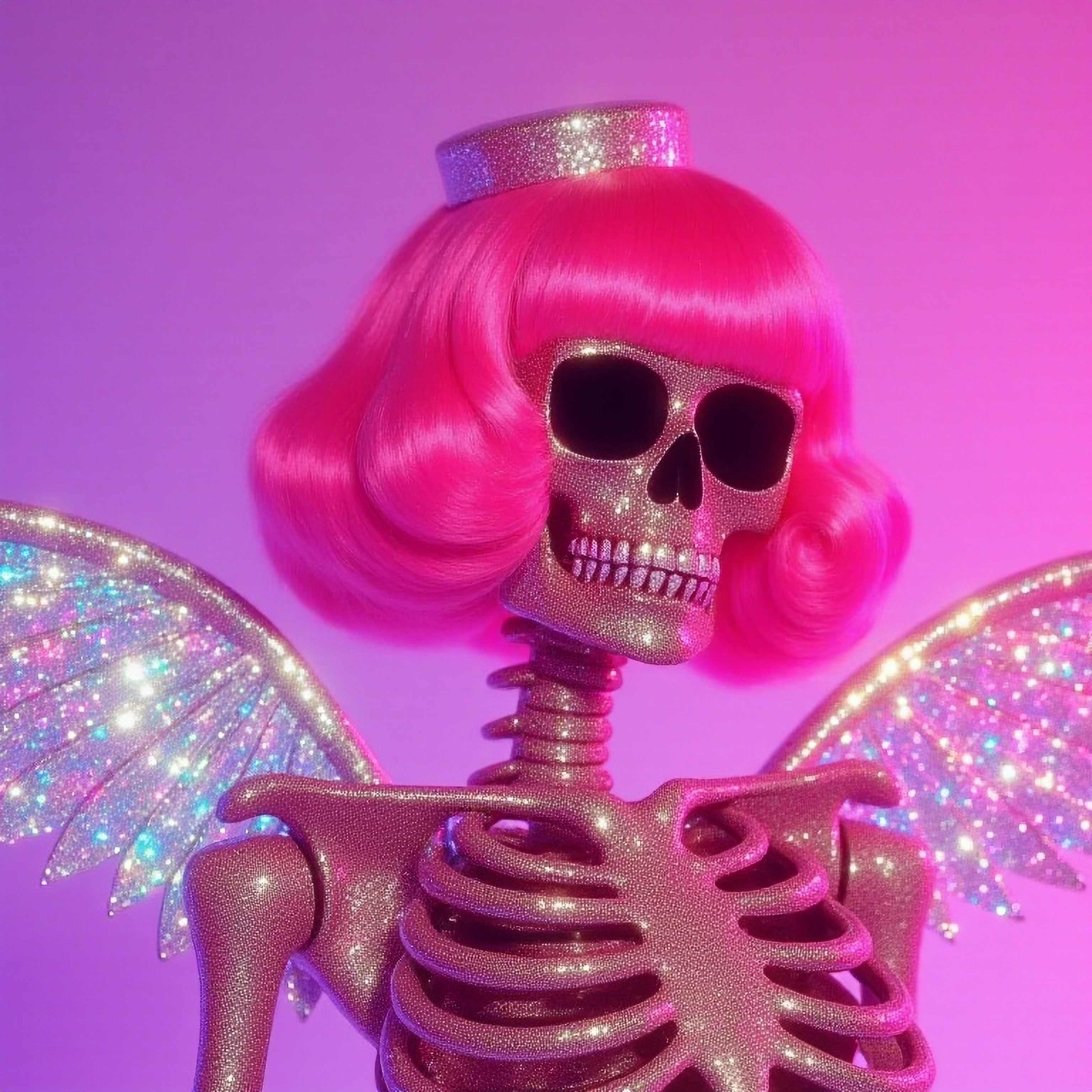 Purple colours, shimmering objects, vivid lights, distorted images, glitter etc.