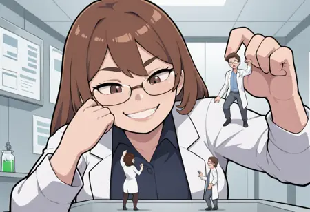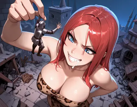 LoRA for depicting a tiny person in the hand of a giantess and held near her face with the implication of imminent vore. While that is what it was designed for, this supports pretty much any facial expression recognized by the checkpoint, so I have included examples that are less vore-ish.