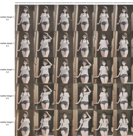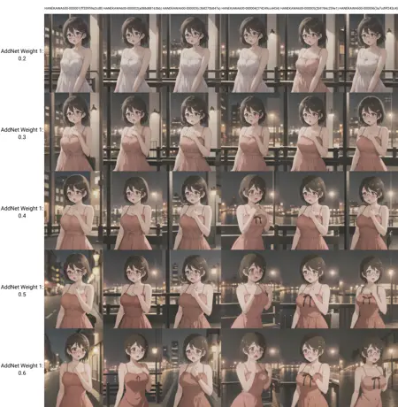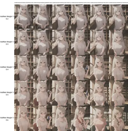 권장 파라미터는 0.2–0.6입니다. 0.6을 초과하면 극장판 화풍에 더욱 가까워지지만, 그에 따라 땋은 머리/안경/나오에쓰 학교uniform 등의 특징이 효과적으로 분리되지 않을 수 있습니다. 주목할 점은 태그가 다소 분산되어 있지만, 복장/헤어스타일/얼굴 특징은 주로 "naoetsu_high_school_uniform,school_uniform,braid,single braid,glasses"에 집중되어 있다는 것입니다. 원하지 않는 특징을 부정적 프롬프트에 포함시켜 그 표현 정도를 조절할 수 있습니다(저자가 공개한 샘플 이미지의 프롬프트 작성 방식을 참조하세요).