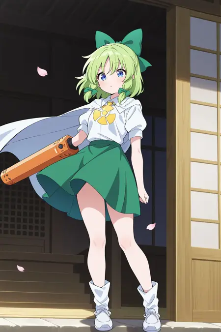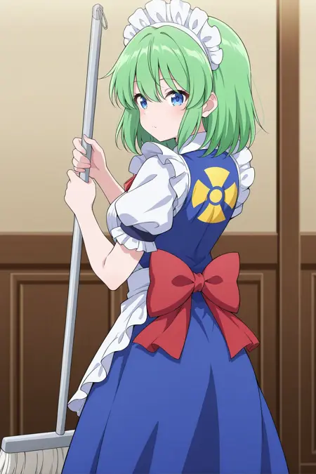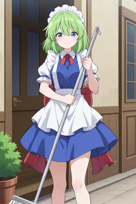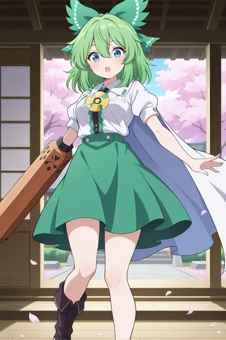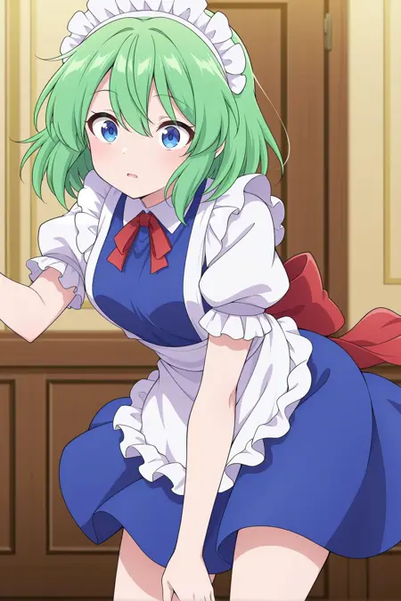 ruukoto, 1girl, solo, blue eyes, green hair, medium hair,