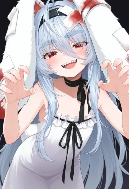 パラはウサギ娘です——柔らかくかわいらしいブルーとホワイトの美学を持ち、鋭い歯、深紅のらせん状の目、血で汚れた包帯が特徴です。