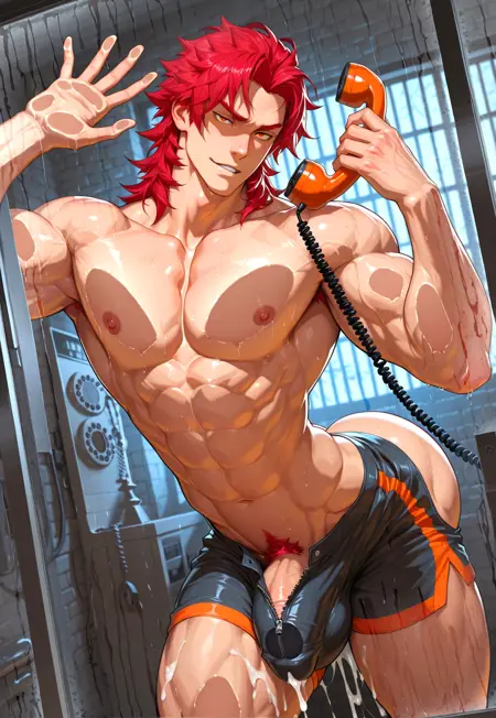 | 训练词汇 | orange prison jumpsuit, unzipped jumpsuit,已复制! chest exposed, pressing chest against window, visitor window, holding corded phone, chest pressed against window, on other side of window, against glass, window, pectorals, pectorals press, against glass,已复制! Detailed background, prison, jail, visitor room,已复制! |