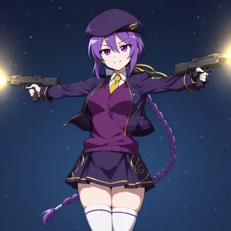 rollingbusterrifle, holding gun, beam rifle, spread arms, outstretched arms