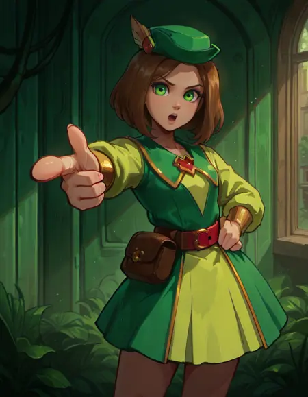 このLoRAは、『One Step From Eden』のショップキーパーを再現したもので、彼女の象徴的な緑のドレス、羽飾りのベレー帽、そして实用的なポーチが特徴です。長い茶色の髪と表情豊かな緑または赤の目、神秘的なオーラを備えた彼女は、放浪する商人としての役割を強調する単体のシーンに最適です。忠実な結果を得るにはOneStepFromEdenShopKeeperをご使用ください。