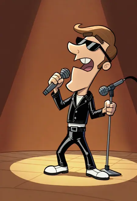 태그: C_H_N_JN, 갈색 머리, 폼파두르, 측면 수염, 선글라스, 가죽 자켓, 흰 셔츠, 가죽 바지, 흰 신발