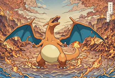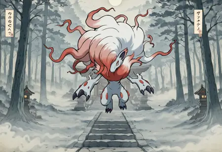 ポケモン(生物)、フシギバナ、スタイル、太い線、輪郭、ポケモン(生物)、人間なし、花、屋外、木、牙、自然、傘、口を開けた、昼