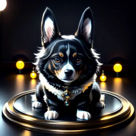 引き続き、スタイルの手がかりとして:3D、シンプルな黒背景、台座を使用してください。