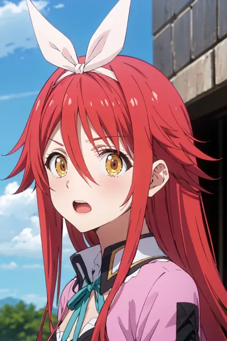 要还原她的原版服装,请使用以下标签:pikkysylphy, 1girl, 红发, 长发, 过膝袜, 单人, 草地, 乳房, 手叉腰, 靴子, 白色过膝袜, 裙子, 丝带, 胸部凸显, 手腕束带, 绝对领域, 黄色眼睛