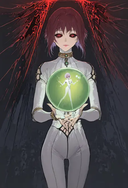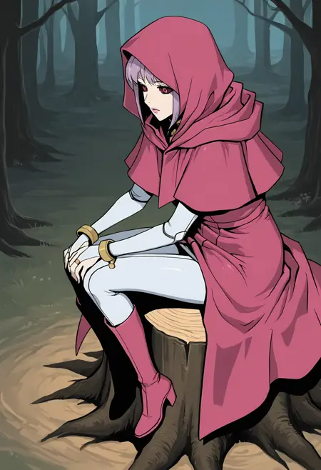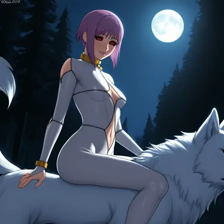 | 训练词汇 | w0lf_ch3za, dark red sclera, red eyes, purple hair, short hair, thick lips, pink lips, pink lipstick, 已复制! 0u7f17_default, white bodysuit, bodysuit, unique bodysuit, bridal gauntlets,已复制! 0u7f17_magenta, magenta coat, magenta capelet, hood up, magenta boots, boots, (white bodysuit, bodysuit, unique bodysuit:0.5),已复制! |