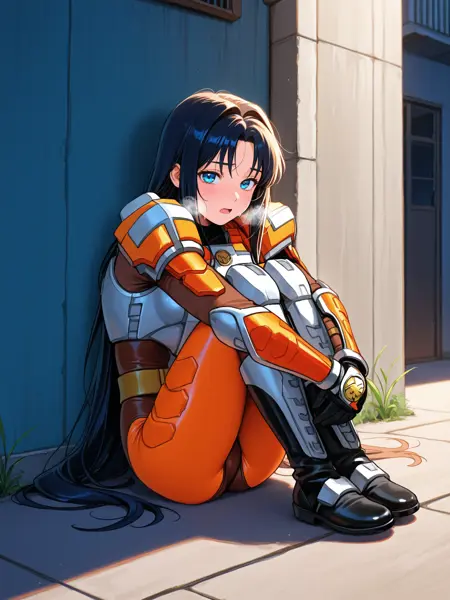 「全身」または「足がフレーム外」の場合は追加(トレーニングデータでは「boots」がプロンプトでしたが、私のテストでは「knee boots」の方が、銀色の膝ガードを含む彼女のブーツをより正確に再現します):
