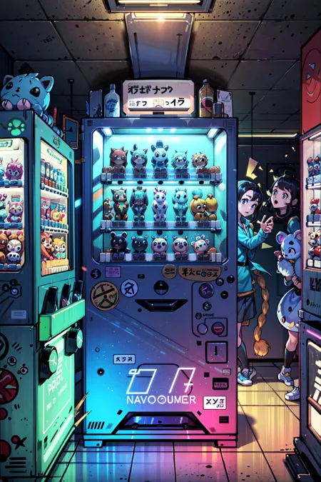 可爱自动售货机、抓蛋机和街机中心。