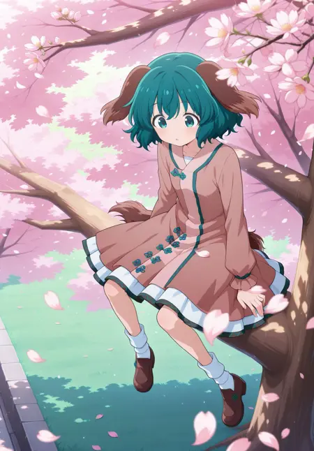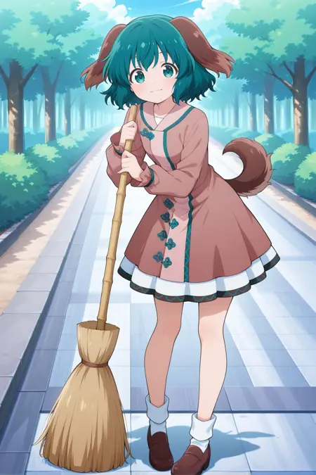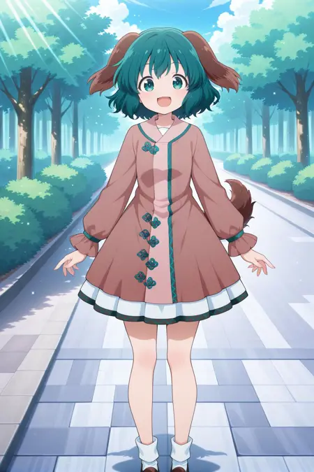 kasodani kyouko, 1girl, solo, green eyes, green hair, medium hair, dog ears, dog tail,