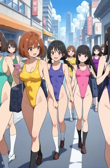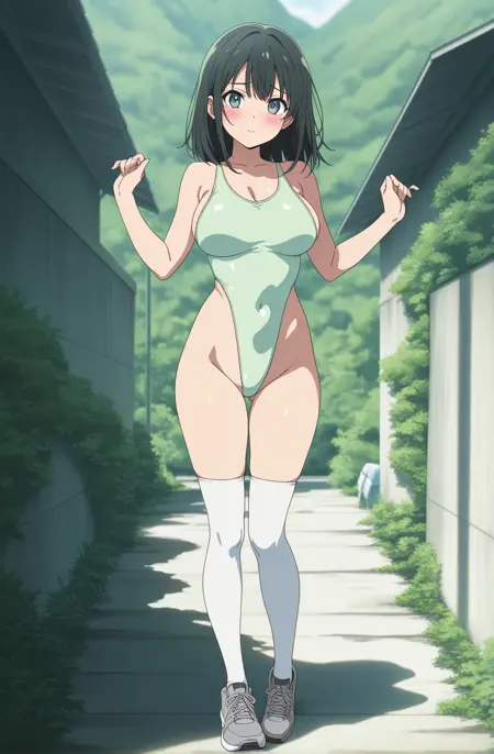 単色ハイレグ水着のLoRAです。側面の布の面積が極端に狭くなるように調整されています。