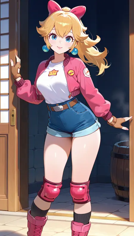 This is Princess Peach [touring], the female character in the Japanese game "Mario Kart".