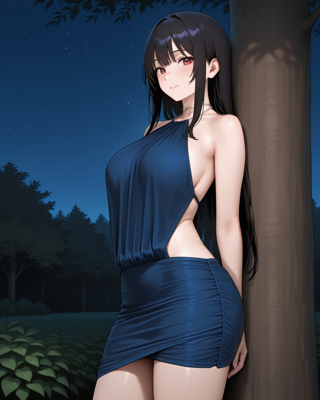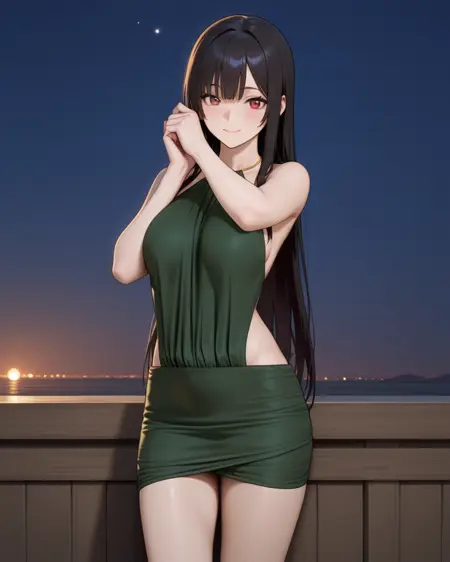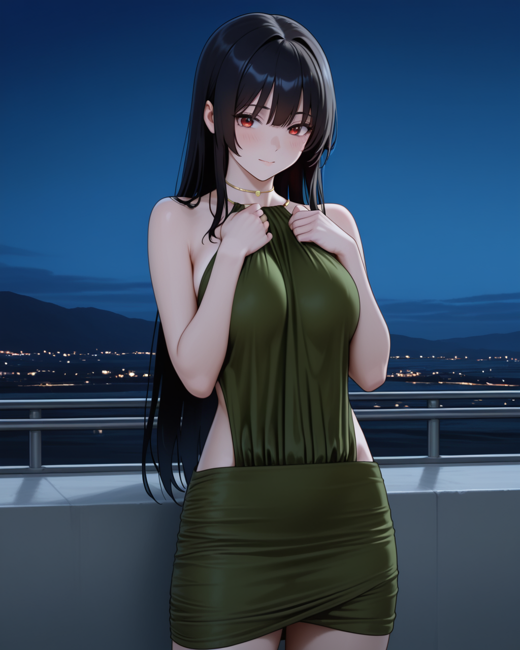 metal choker这个提示词指的是裙子的吊脖部位是一个金属圈,在高强度下似乎加不加都行。