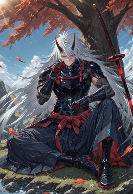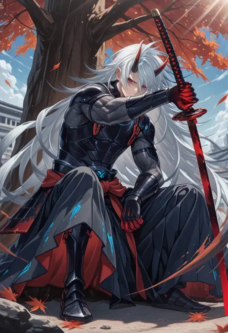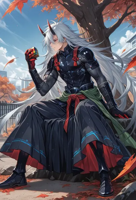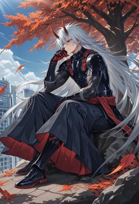 1boy, long hair, oni horns,