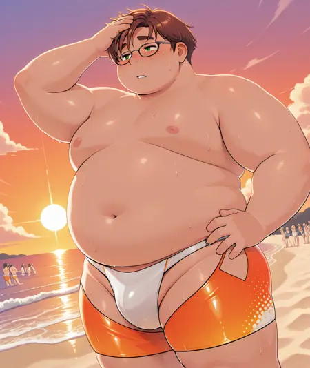 tashov, 1boy, chubby:0.5, green eyes, glasses, (tall), solo,