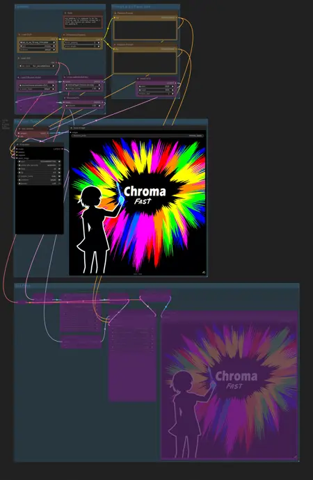 최소한의 화질 손실로 16단계 작동을 위한 하이퍼 LoRA를 활용한 간단한 가속 Chroma 워크플로우 및 선택적 두 번째 단계. 첫 번째 단계는 약 1분, 두 번째 단계는 A4000에서 약 1분 20초 소요. (기본적으로 두 번째 단계는 무시됨. 2번째 패스 노드/그룹을 선택하고 b를 누르면 활성화됨).