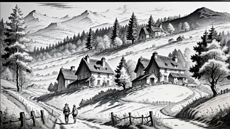 저는 제 첫 번째 LoRA XL 모델을 여러분과 공유하고자 합니다. 이 모델은 다소 불안정하고 예측하기 어렵습니다. 종종 해부학과 원근법을 놀랍도록 변형시키는 것을 즐깁니다. 그러나 조금의 인내심을 가지고 사용하면 독특한 스타일의 흥미로운 이미지를 생성할 수 있습니다. 이미지를 흑백 또는 세피아 톤으로 원하신다면, "black ink"라는 키워드를 추가하는 것이 좋습니다. 그렇지 않으면 사용하는 주 모델에 따라 가끔씩 미묘한 색상이 나타날 수 있습니다.