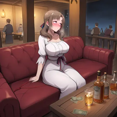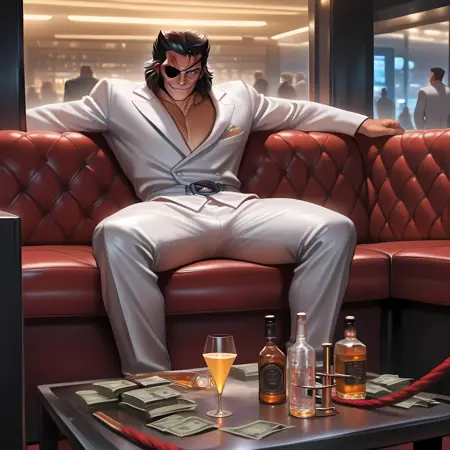 附加:室内,桌子,沙发,红色丝绒绳索围栏,立柱,夜总会