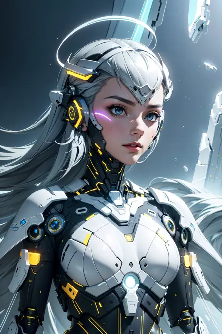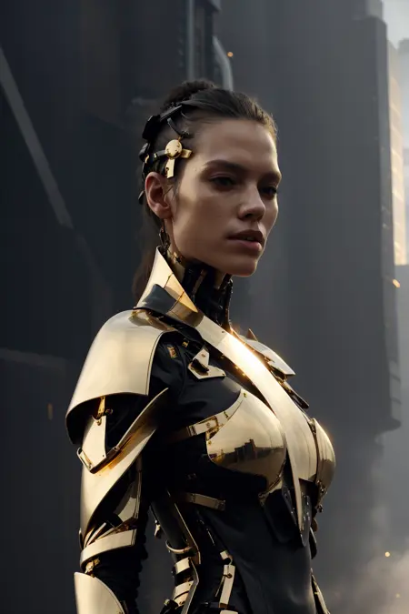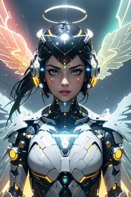 Lora의 시작점(가중치)은 0.4 - 0.8입니다. 프롬프트에는 "cyber", "filtech" 또는 둘 다 함께 "cyber, filtech"라는 힌트를 추가하시기를 권장합니다.