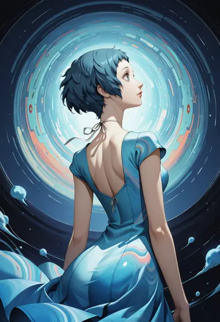 Persona3Fuuka, 1girl, blue hair, short hair, blue eyes