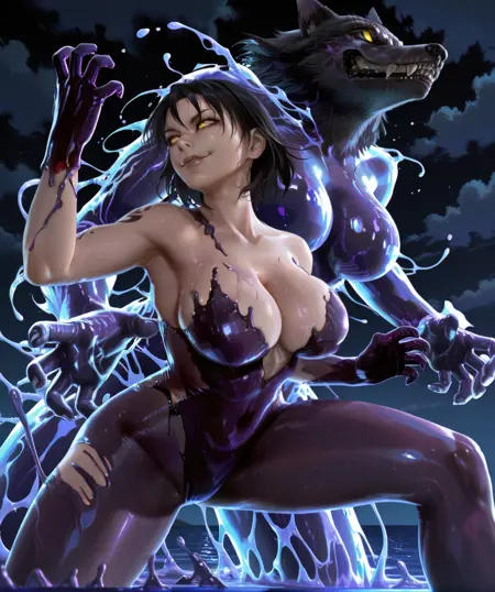 slime, and her wolf spirit, (stand)- results will vary - slime may turn green or yellow