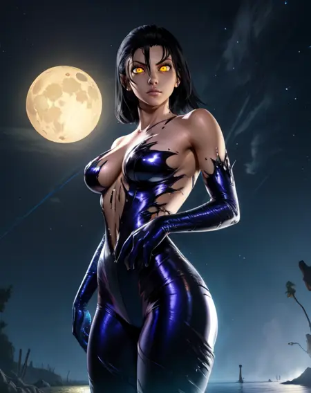 黏糊糊的紧身裤,或紫色黏稠服饰,或紫色黏稠连体衣,或紫色紧身衣,黏糊糊的手套,露胸