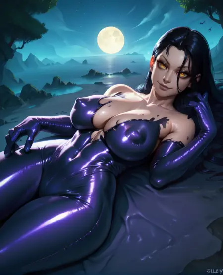 黏糊糊的紧身裤,或紫色黏稠服饰,或紫色黏稠连体衣,或紫色紧身衣,黏糊糊的手套,露胸