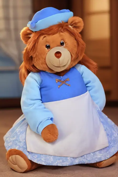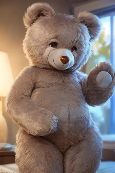 我最初运行这个训练是为了让自己更深入了解LoRA训练设置。但结果还不错,于是我决定上传它。该模型使用了由Sugar Tubs公司生产的高达50英寸的巨型泰迪熊毛绒玩具的十二张图片进行训练。不过,你也可以通过平衡角色自身的LoRA权重与该模型的权重,来将其他角色“毛绒化”。