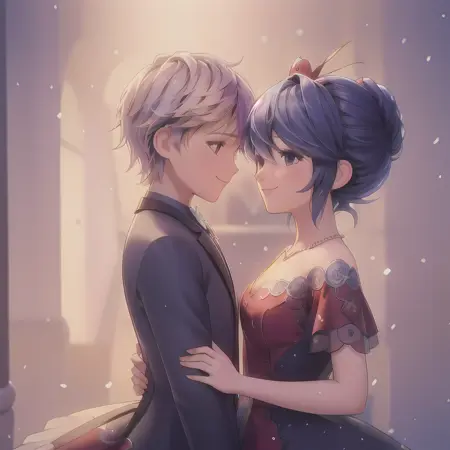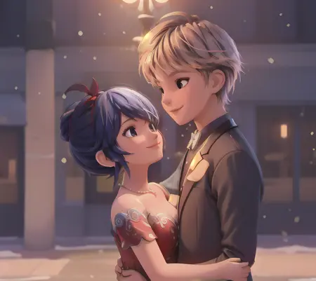Marinette and Adrien in ball outfits from Miraculous Ladybug And Cat Noir: The Movie